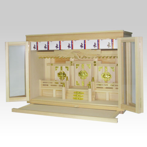 【送料無料】国産ひのき使用!神棚 箱宮20号三社 価格: 12,800円 レビュー評価: 4.86 レビュー数:7 ■商品詳細 商品サイズ(cm) 幅×奥行×高 57.5×25.0×41.5 カラー 材質 国産 木曽檜 重量(kg) 生産国 日本 付属品 仕様 御神札の入るサイズ 約28.0cmまで お供え物を置ける 引出つき 組立 完成品 梱包 1梱包 ※発送時の梱包数・サイズとは異なる場合がございます 備考 ご注文から商品のお届けまで 3日?7日かかる場合がございます メーカー 山六産業 中央に天照大神(伊勢神宮)の御神札 向かって左に信仰される神社の御神札、 向かって右にお住まいの地域の神社(氏神様)の御神札 をお祀りします 神棚の扉面は一面取り外しが可能です。 大きな御神札も入れることができます。 Supported by 楽天ウェブサービス |